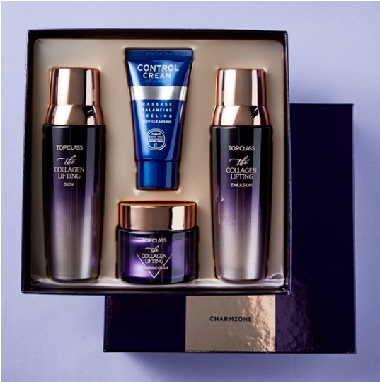 어머니들이 받고 싶어 하는 선물 중 화장품도 포함되어 있습니다. 어른들이 좋아하시고 많이 찾으시는 콜라겐을 비롯한 각각종 영양성분을 함유한 전문케어 탑클래스 화장품입니다. 박스에 담겨 고급스러운 느낌이 납니다.